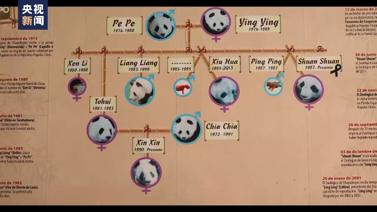 1975年中国政府赠予墨西哥查普尔特佩克动物园一对大熊猫“迎迎”和“贝贝”。此后动物园成功实现了大熊猫的繁殖,并养育着中国海外最长寿的大熊猫“双双”和“欣欣”。
