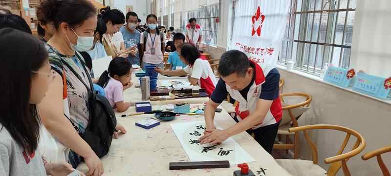 翰墨丹青服务队以“墨香飘少图 书画颂党恩”为服务主题,为市民群众写书法作书画,传递书法文明,传承优秀传统文化,排队等候墨宝佳作的市民络绎不绝。