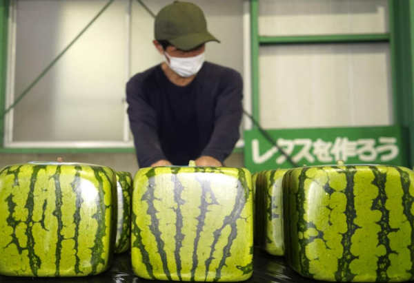 目前共有8家农户在当地生产这种西瓜,批发价约为每只1万日元(约合人民币500元),预计到7月中旬将出货300只。方形西瓜形如骰子,边长约18厘米,由当地农户在50年前研发,希望给当地经济带来活力。方形西瓜长到一定大小后,被放入箱型容器内定型。为保存更久,西瓜在没熟前就采摘,因此不适合食用,可供人观赏约1年左右。