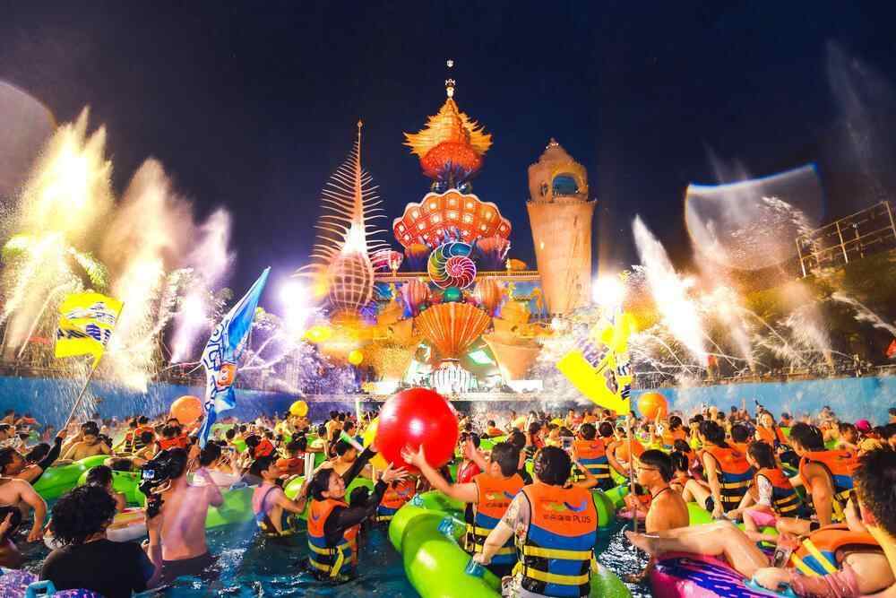 盛夏夜,在玛雅海滩水公园的海神山前8000平方米造浪池中,水上飞人叠加裸眼激光水幕大秀的电音、水柱、水雾……每年夏季的夜晚,劲歌热舞和超燃的摇滚音浪,都是玛雅海滩水公园的标配,成为年轻人的“尖叫聚集地”。