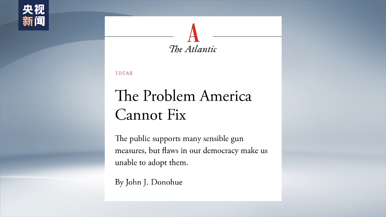 今年4月,斯坦福大学法学院教授约翰·多诺霍在《大西洋月刊》上刊文表示,枪支暴力已成为“美国无力解决的问题”。他表示,大规模枪击事件是一个严重且日益恶化的问题,给公众带来了沉重的负担,同时“也说明了美国政治体系在采纳众多受欢迎的公共政策策略方面的无能为力”,这是美国的“国家耻辱”。如果美国政客仍拒绝倾听民众的呼声,美国人恐怕永远难以安心庆祝“独立日”。