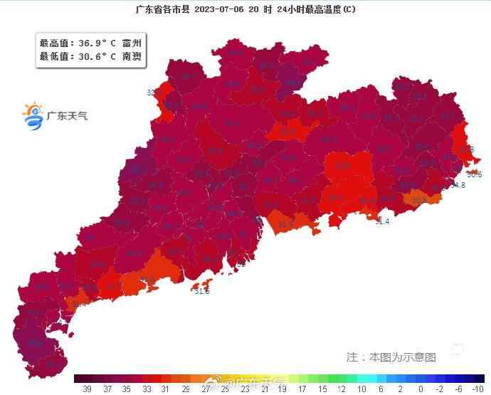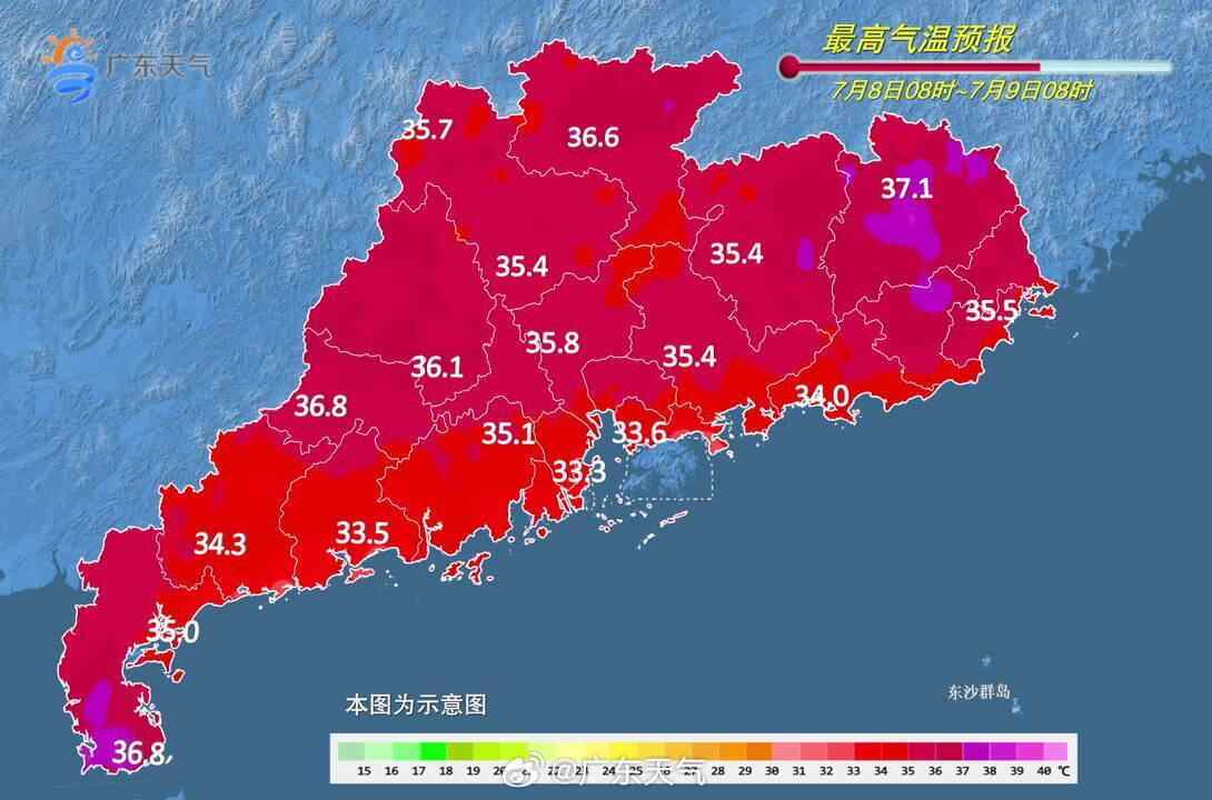 7月6日广东最高气温直逼37℃!101个高温黄色预警生效中,外出请注意防暑降温勤补水。
