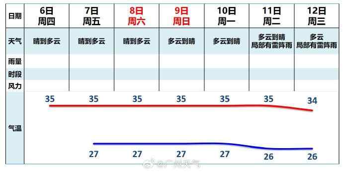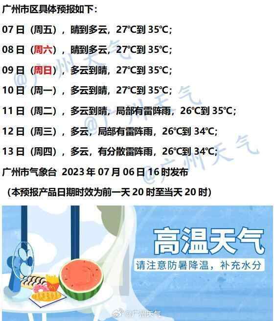 广州方面,未来几天持续晴热,大家要注意防暑降温,及时补充水分,高温时段尽量避免长时间户外活动。