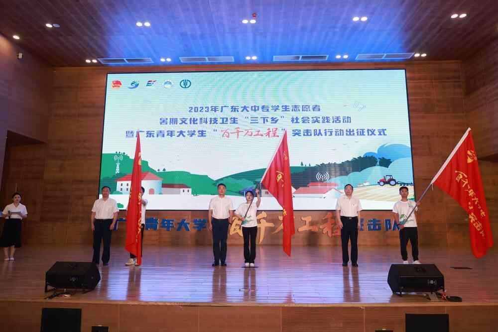 争当“突击队”,勇做“生力军”!南粤学子奔赴广阔乡村,为“百千万工程”贡献青春力量。7月7日,2023年广东大中专学生志愿者暑期文化科技卫生“三下乡”社会实践活动暨广东青年大学生“百千万工程”突击队行动出征仪式在华南理工大学举行。