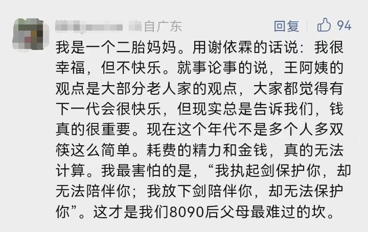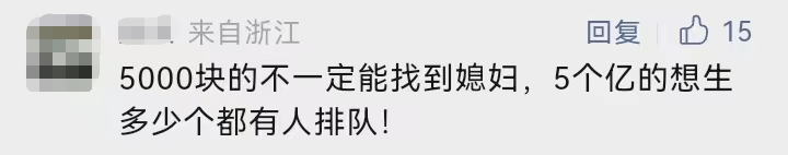 对于王大姐的观点,网友们引发了激烈讨论。有网友认为相比生孩子,自己宁愿选择5个亿。