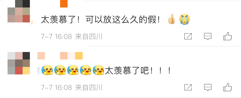 网友看到这个消息,纷纷表示羡慕:“这么久的假期!”