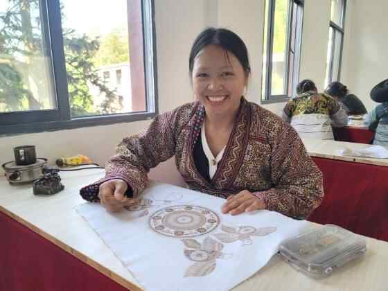 融合了贵州梯田、凤凰(百吉鸟)、小蛮腰、广州地铁意象的贵州蜡染刺绣,你见过吗?纳雍县猪场乡湾子村的农民专业合作社的非遗工坊展厅内,每一件栩栩如生的蜡染刺绣都是由湾子村的全职妈妈用蜂蜡一笔一笔手绘而成的。早年在苏州打工的王丽,有了孩子后便回到家乡当起了全职妈妈。“那时候没有收入,合作社成立之后,我们多了一份兼职,每月有两三千元的收入,工作时间也有弹性。”王丽告诉记者,她喜欢在麻布上天马行空地进行蜡染刺绣,希望随着手艺越来越精湛,日后能成长为一名非遗传承人。