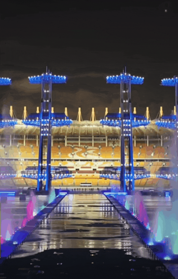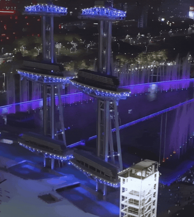 两道巨型水柱构成一个拱门造型