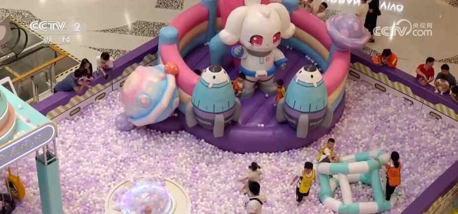 上海某商场运营经理 赵佳丽:我们会在暑假档的时候,在中庭引入一些比较热门的IP(知识产权)游玩设施。另外,因为三楼是儿童业态,所以全年都会安排一些固定的互动点来供周边的家庭游玩。