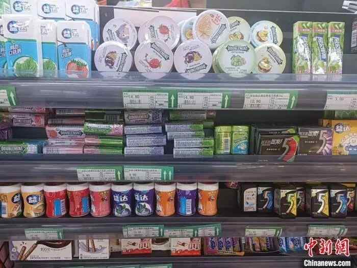 超市货架上玛氏箭牌旗下的绿箭、益达等品牌的无糖口香糖均有添加阿斯巴甜