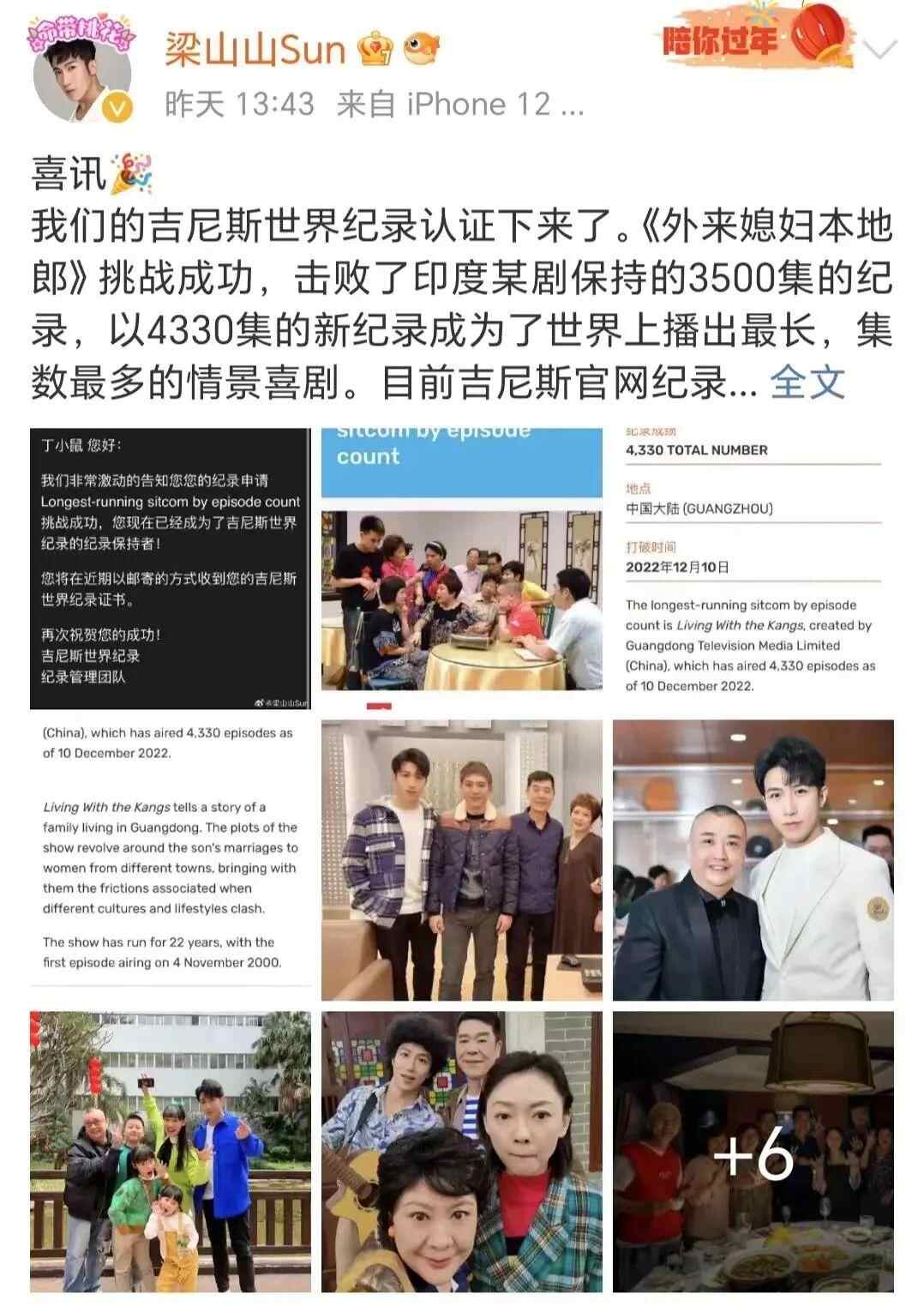 据悉,此次《外来媳妇本地郎》挑战成功,击败了印度某剧保持的3500集纪录,以4330集的新纪录成为世界上播出最长、集数最多的情景喜剧。目前,吉尼斯官网纪录已更新。