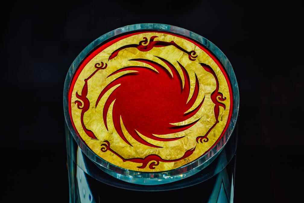 在成都金沙遗址博物馆,能欣赏到这件独一无二的国宝。它不过手掌大小,整体呈圆形,上面的图案分为内外两层,外层由四只首尾相接的飞鸟构成,朝逆时针方向飞行。被这四只飞鸟环绕着的,是12条弧形齿状芒饰,像是顺时针旋转着的太阳。两层图案均采用镂空的方式呈现,如同一幅技巧精妙的现代剪纸作品,令人联想起“金乌负日”的美丽传说,表达着对生命及运动的讴歌,以及自强不息、昂扬向上的精神。