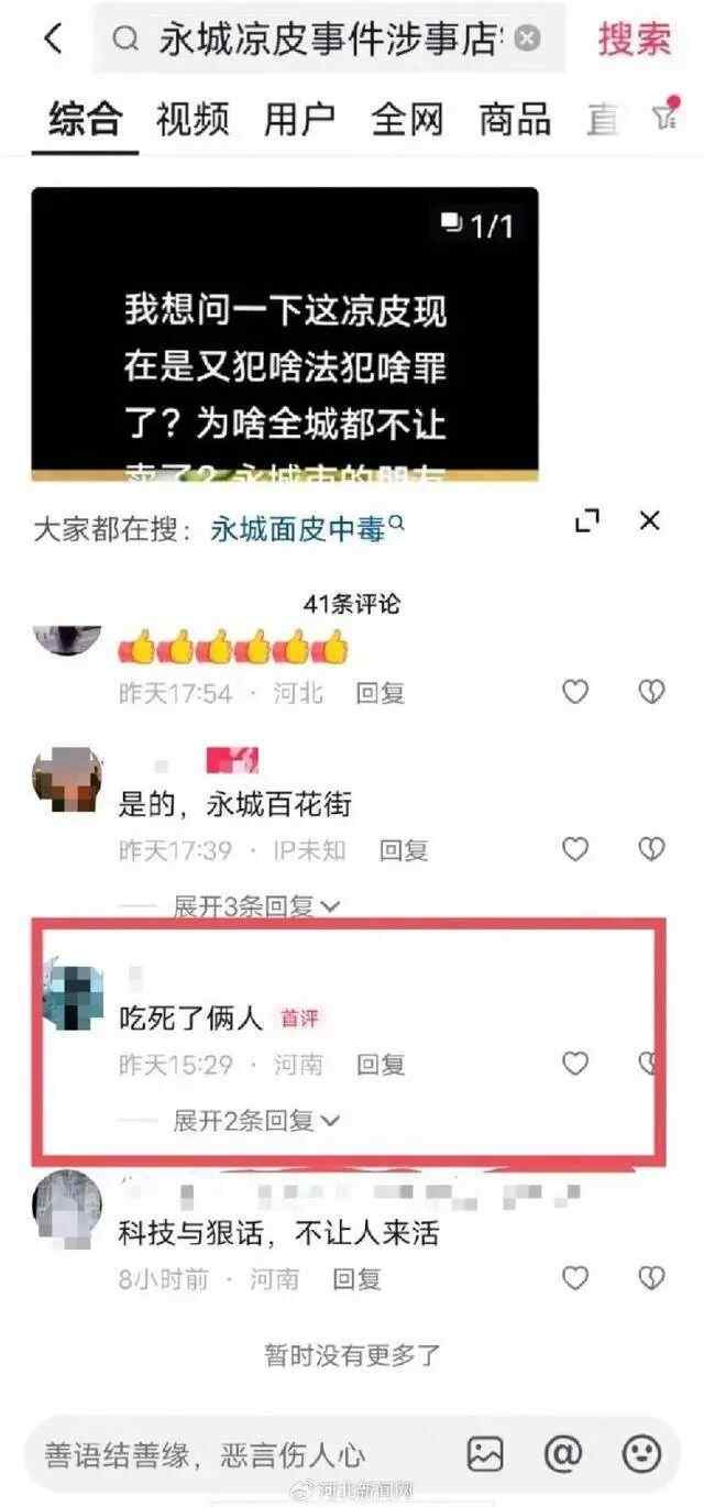 根据网传消息,河南永城市一名20岁左右的女孩与家人在永城市百花街吃了一碗凉皮后中毒,目前,该女生正在医院ICU住院,而其同行的舅妈已经离世。永城市全市凉皮店都已经查封,暂时不让销售凉皮。