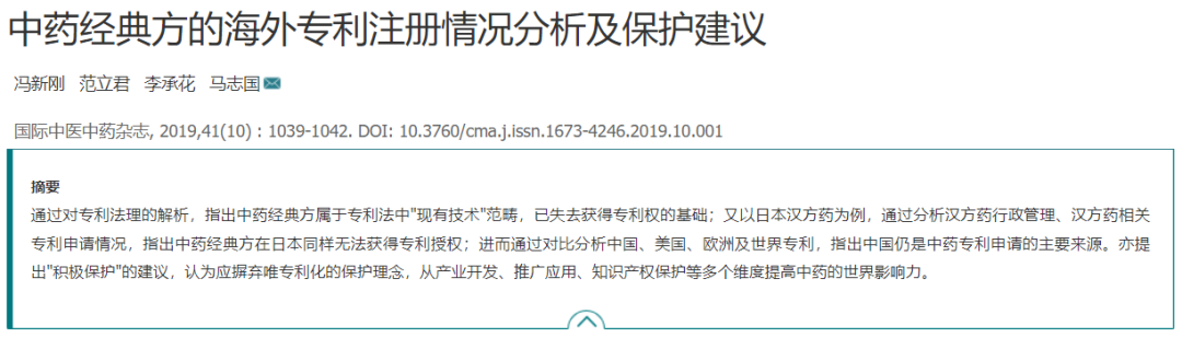 实际上,早在2019年就有学者以日本汉方药为例,通过分析汉方药行政管理、汉方药相关专利申请情况,表示中药经典方在日本无法获得专利授权。不仅如此,通过对专利法理的解析,可以发现中药经典方属于专利法中“现有技术”范畴,也已失去获得专利权的基础。