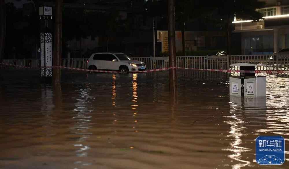 7月17日晚,在广东湛江海滨大道北,车辆由于道路积水被困。