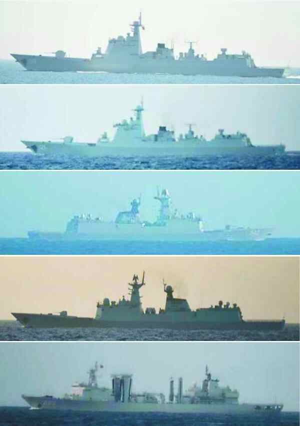 日本防卫省统合幕僚监部18日向外界“通告”参加“北部·联合-2023”演习的中方海上编队最新动向。日方称,17日凌晨,日本海上自卫队在对马岛西南方向约130公里处的海域,确认到正在向东北航行的中国海军编队(上图),随后5艘舰艇通过对马海峡,向日本海方向航行。