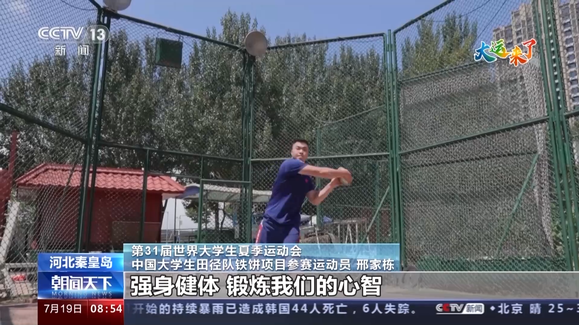第31届世界大学生夏季运动会中国大学生田径队铁饼项目参赛运动员 邢家栋:我觉得体育锻炼不光现在,应该是一生都要去坚持的东西。当我以后退役之后,体育也是我们生活的一部分,强身健体,锻炼我们的心智,都是一个非常不错的运动,所以我们会一直坚持下去。