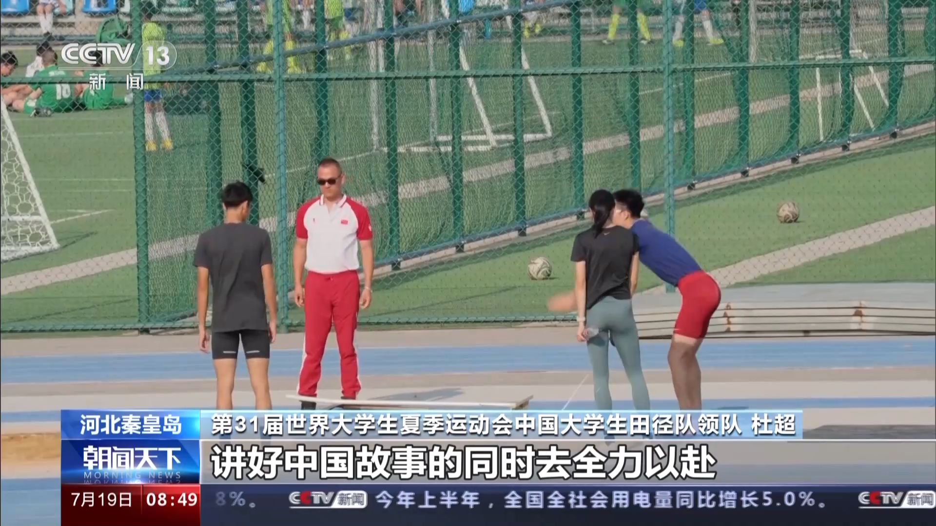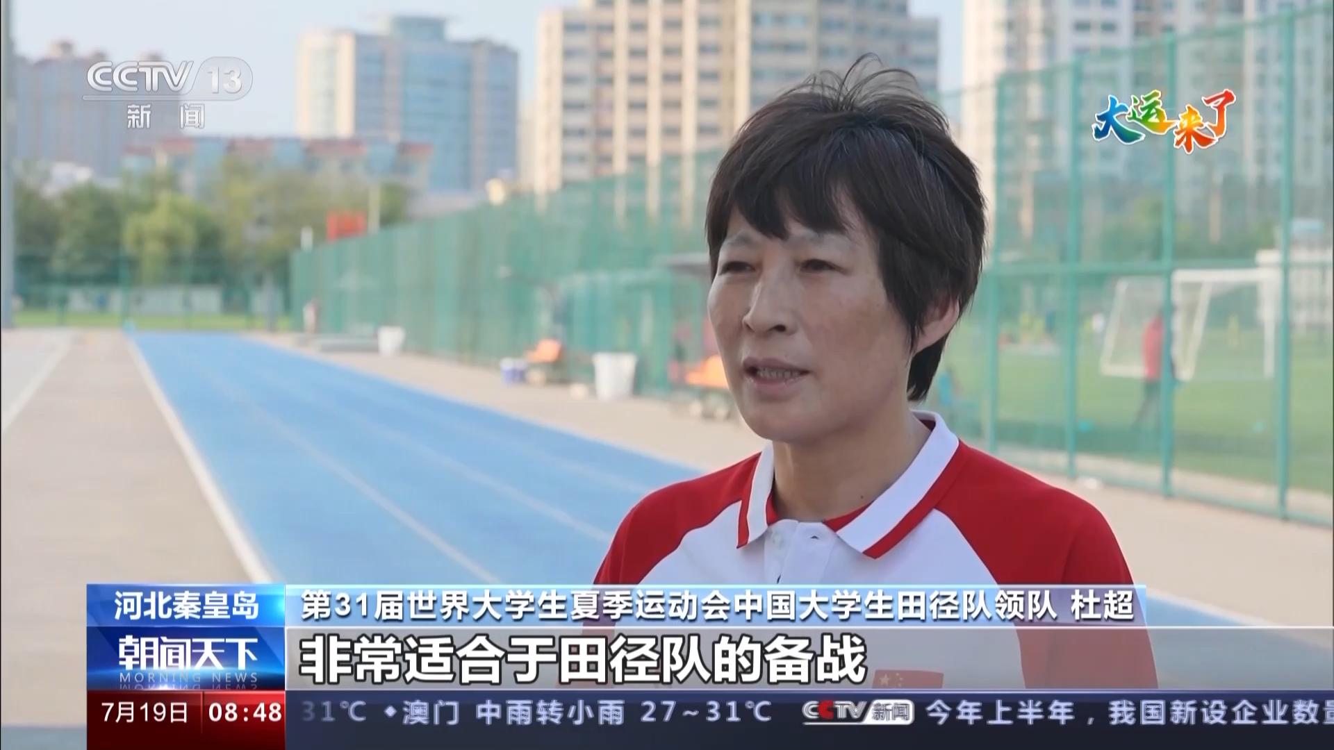 第31届世界大学生夏季运动会中国大学生田径队领队 杜超:这次比赛我想我们不仅仅是在竞技层面要取得胜利,更多期待的还是想通过这次比赛去展现中国当代大学生的热情友善,与世界各国大学生运动员去建立友谊,讲好中国故事的同时去全力以赴取得好成绩,为祖国争光。