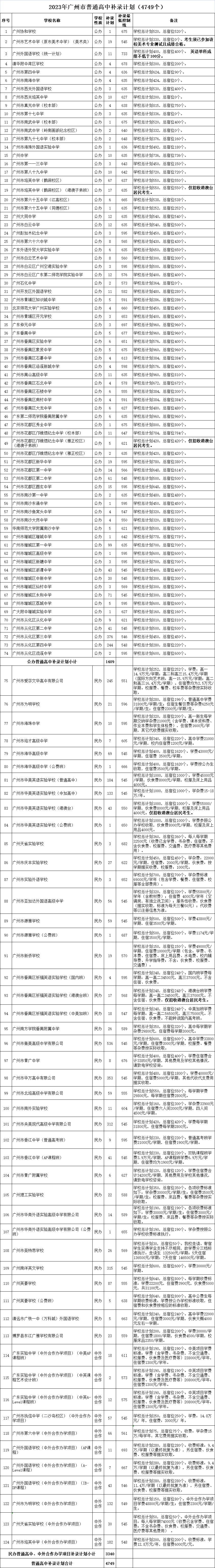 7月20日,广州市招考办发布的“2023年广州市普通高中补录计划”(以下简称“补录计划”),显示了所有补录学校补录计划、补录最低控制分数线、招生总计划、学费等信息。