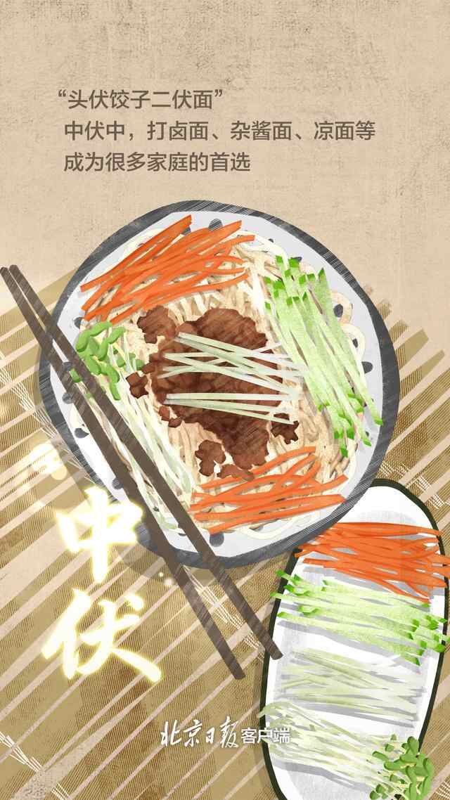 “头伏饺子二伏面,三伏烙饼摊鸡蛋”,按照我国多数地区的食俗,中伏这天要吃面条。