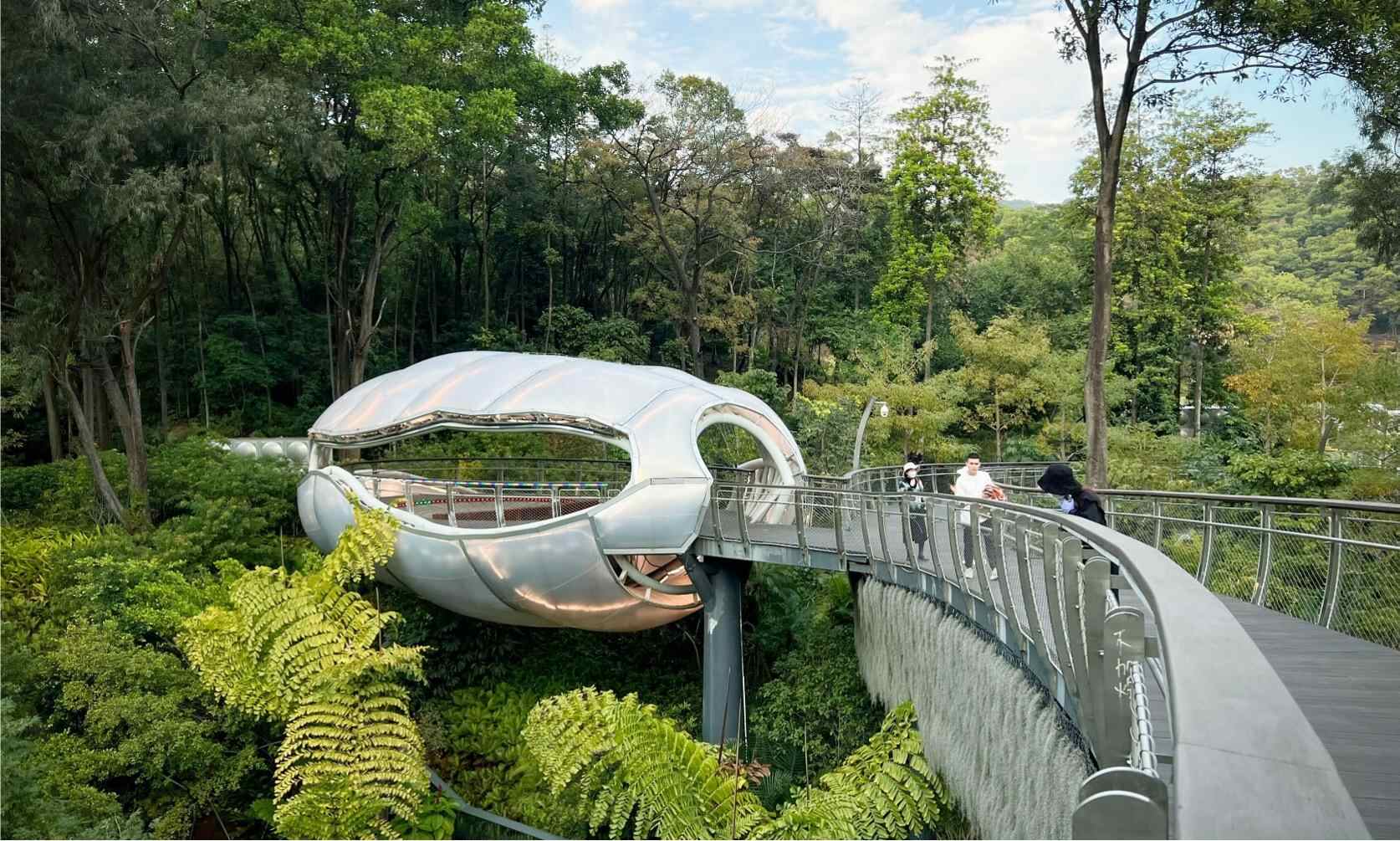 其中,白云山迁地保护示范区云溪片区运用经典造园手法,以“两馆、五园”的空间格局,传承岭南园林园艺文化,讲好中国花城故事和岭南植物发展史。白云山迁地保护示范区云萝片区则以生态花谷为主题,环湖成园,以一条1.2公里的高空木棉道贯穿四大主题花谷,打造一谷一花园。