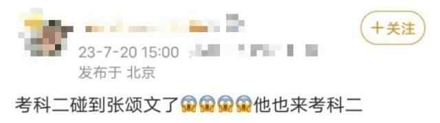 据网友7月20日下午爆料,他在考驾照的时候,碰到张颂文也来考科目二。