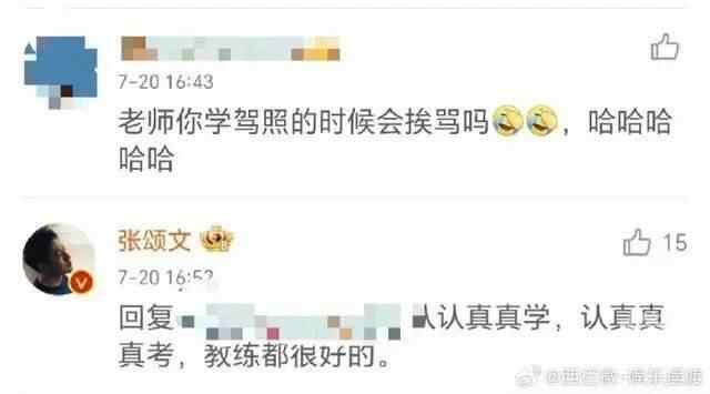 好奇的网友立刻跑去问张颂文:你学驾照会挨骂吗?