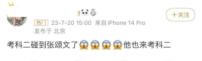 21日,#张颂文考科目二被围观#一词条冲上热搜。据悉,7月20日,有网友发博透露在考科目二的时候碰到了演员张颂文也在考试。