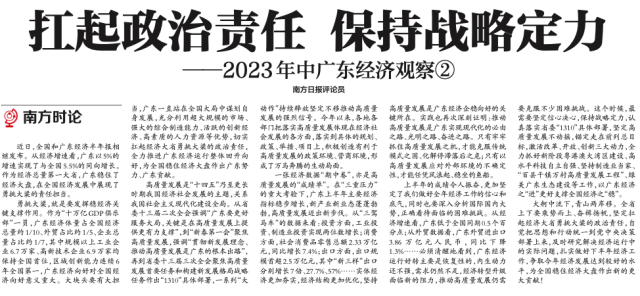 广东经济体量占全国经济总量约1/10、外贸占比约1/5、企业总量占比约1/7,广东经济向好对全国经济向好意义重大。