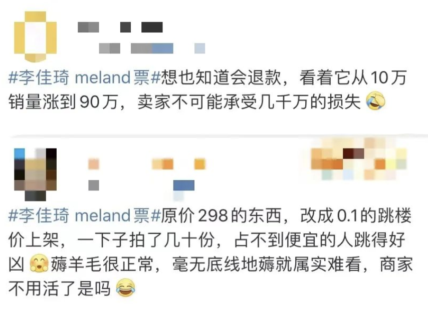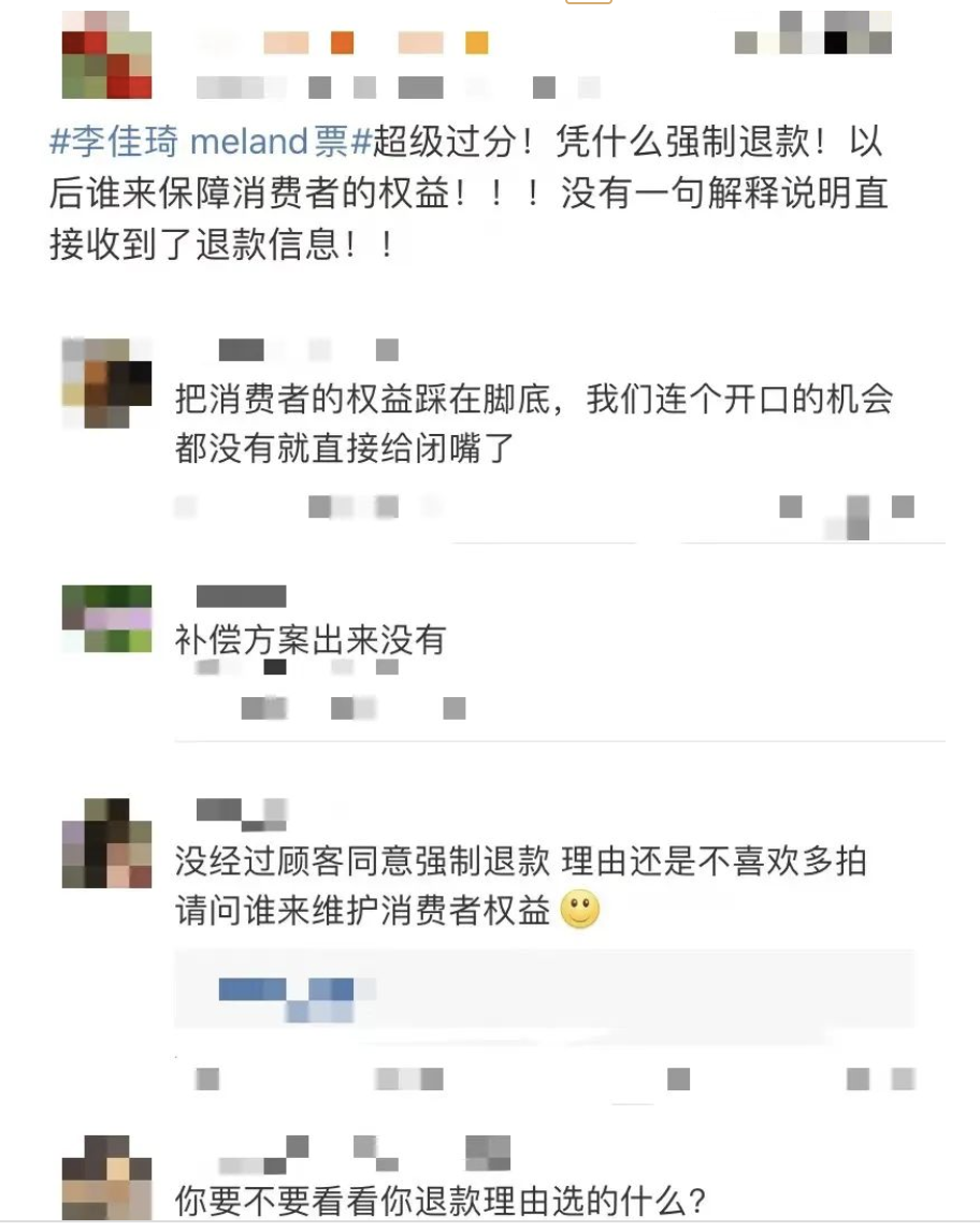 随后,更多人陆续收到了退款消息,“李佳琦meland 票”也冲上了微博热搜。
