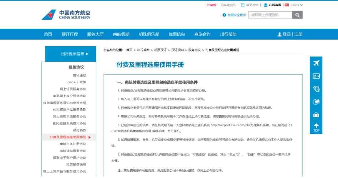 7月20日,记者在南航官网上的“付费选座使用手册”中看到, 付费选座业务目前已开通所有国内城市始发的航段,包括国内始发的国际航班。