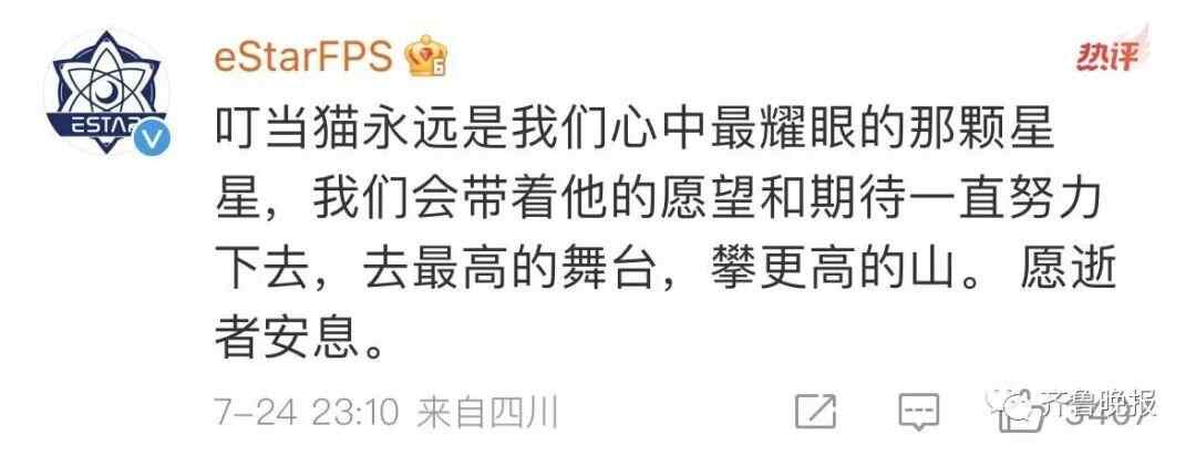 叮当猫是一位具有极高竞技水准的电竞选手,他具有出色的工作能力、敬业精神与个人素养,在其职业生涯中获得了诸多荣誉。对于他的离去,我们致以深切哀悼。愿逝者安息。