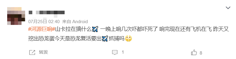 7月25日,河源市应急管理局发布关于7月24日深夜至25日凌晨发生两次巨响的情况说明,初步判定疑似为音爆。