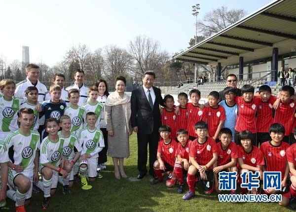 2014年3月,习近平看望了在德国训练的中国少年足球运动员。习近平对小球员们说,我希望你们通过这次来德国培训,在中国青少年足球方面发挥带动作用。也希望更多的青少年投身中国足球事业。我看好你们,看好你们这一代。我希望将来你们能够成为出色的足球运动员。