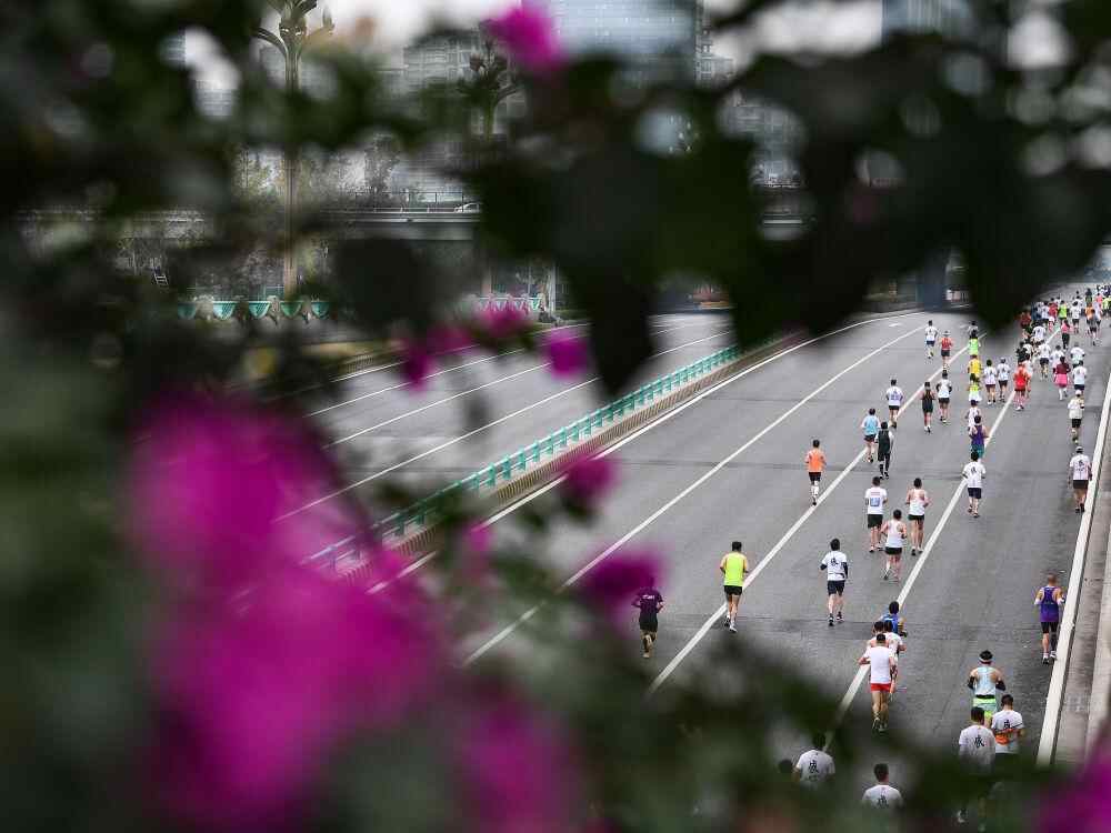 在成都天府大道,马拉松爱好者在比赛中(2022年11月20日摄)。新华社记者 王曦 摄
