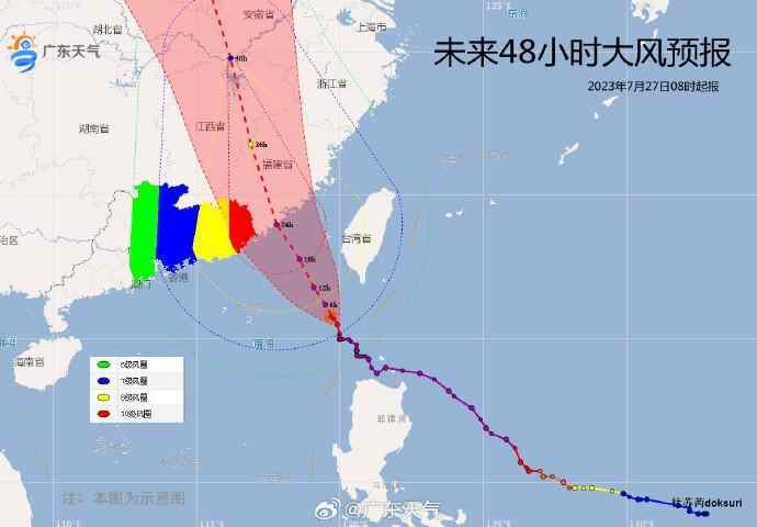根据广东省气象台7月27日上午预计,今年第5号台风“杜苏芮”最大可能在28日早晨至上午登陆闽粤交界到福建晋江一带,虽然截至27日上午其强度相比巅峰时期有所下降,但预计登陆时仍将为登陆地及周边地区带来严重风雨天气,请广东东部市县继续做好防御。