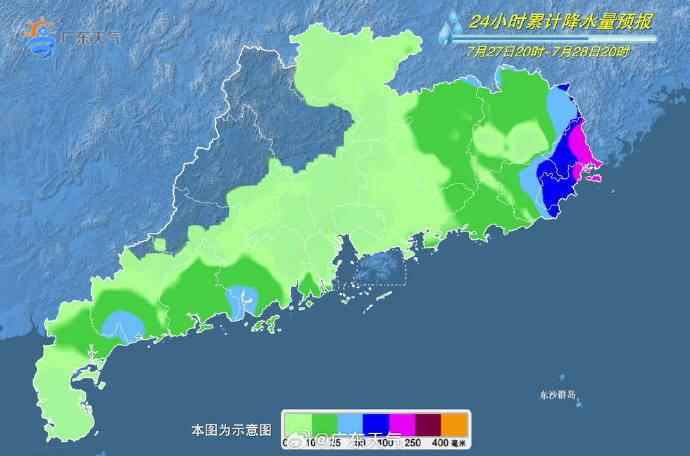 “杜苏芮”先吹风后送雨。28日-29日早晨,广东东部市县有明显风雨,全省大部高温缓解;29日白天起,降水减弱。