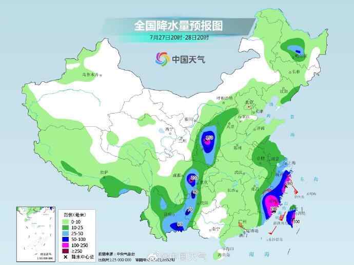 28日,强风雨将直接袭击台湾、浙江、福建、广东一带,福建南部一带会有暴雨到大暴雨,甚至特大暴雨,像是厦门、同安、漳浦等地有可能会出现破同期纪录的降水。此外,浙江沿海地区降水具有一定极端性。