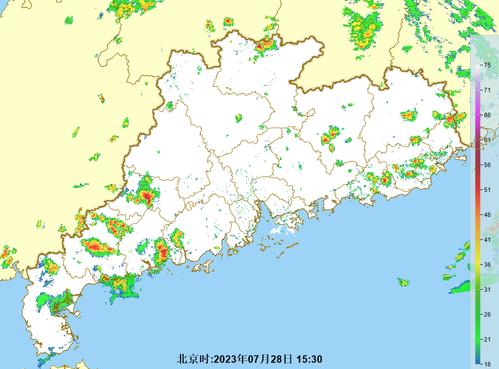 在相对缓和的风雨中,广东不少地方暑热依旧,除河源和梅州大部、惠州南部、揭阳南部和潮州东部外,广东大部分市县28日最高气温介于35℃~38℃,其中佛山南海录得全省最高气温38.3℃,广州国家基本气象站录得最高气温36.9℃。