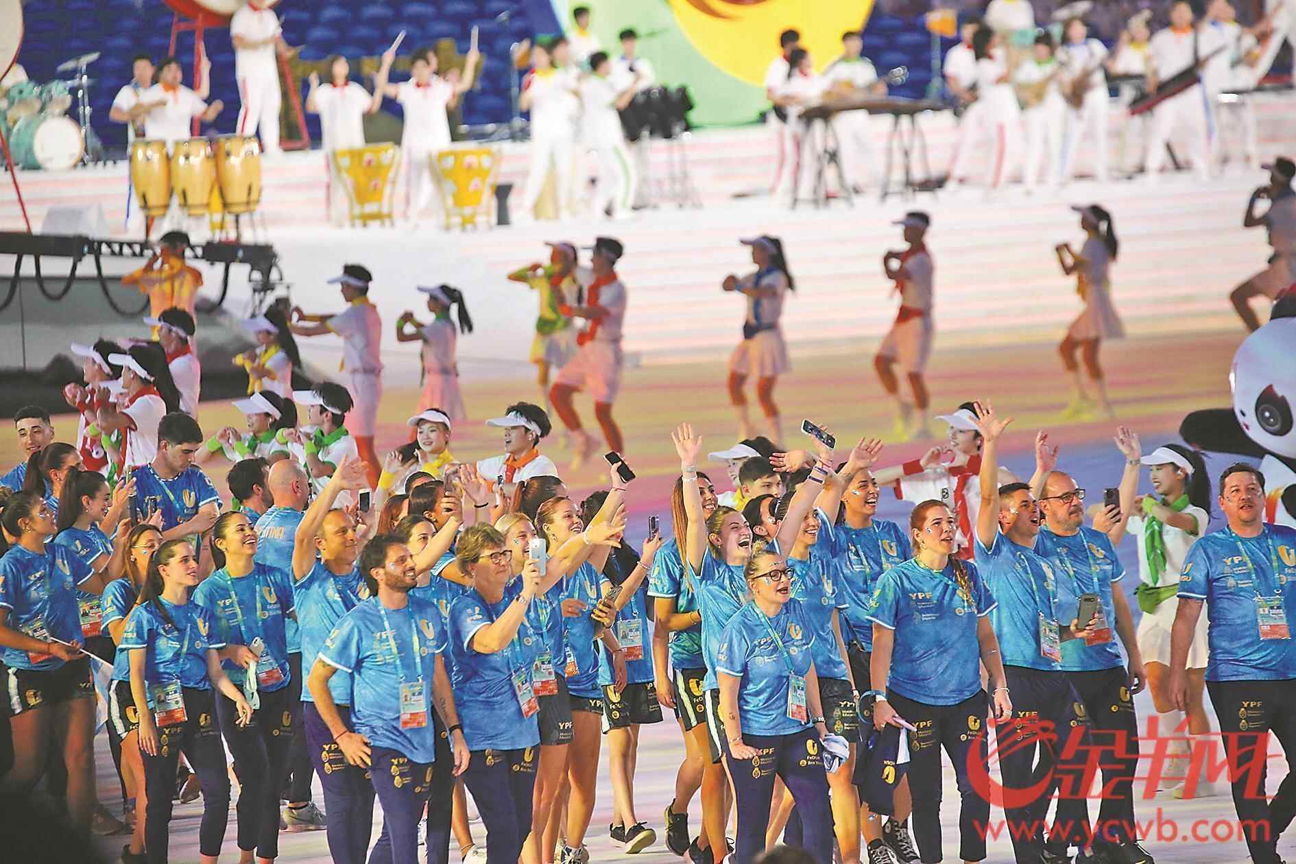当音乐《好一朵美丽的茉莉花》响起,东道主中国代表团走入聚光灯下时,现场氛围达到高潮,人群中爆发出热烈的掌声。
