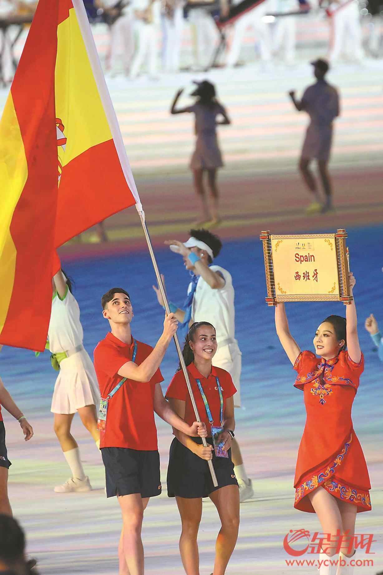 随后,在国际大学生体育联合会会歌歌声中,会旗冉冉升起,迎风飘扬。
