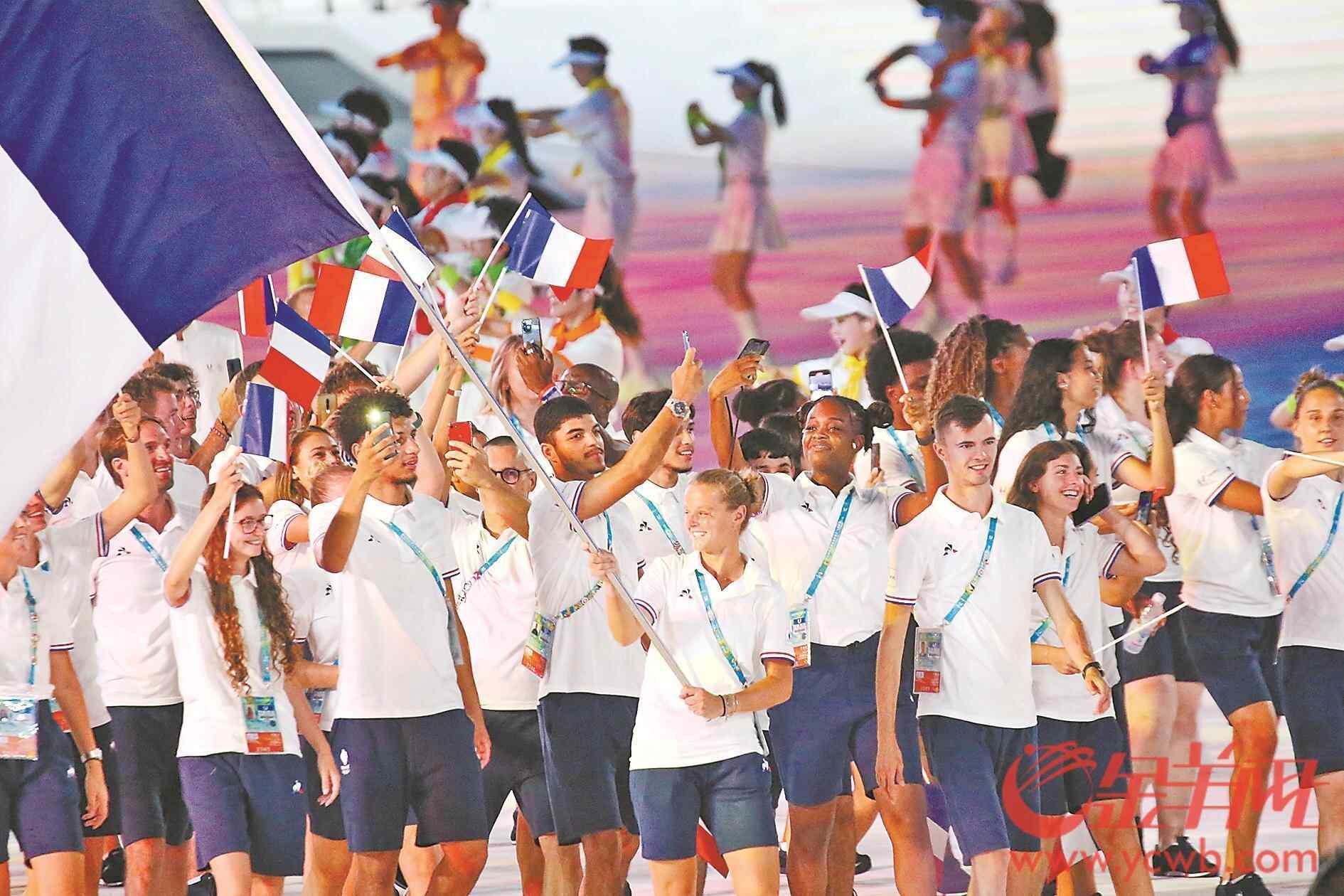 来自世界各地的运动员穿着独树一帜的队服出场,他们挥舞着国旗,形成一片色彩缤纷的欢腾海洋。