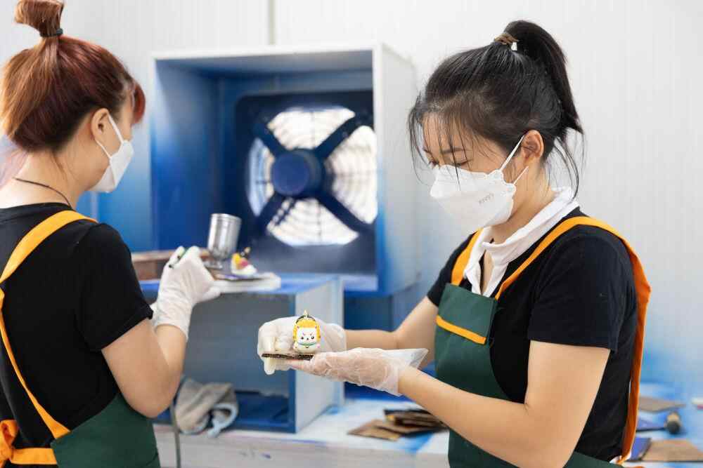 7月27日,工作人员在西畴汤谷文化创意产业园为产品喷漆。新华社记者 吕帅 摄