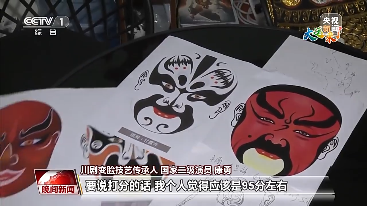 川剧变脸技艺传承人 国家二级演员 康勇:20秒变换12张脸,采用川剧目前用的叫飞脸,也就是变快脸,大概在1秒变换1张脸。每天,我个人也要进行无数次练习,少则十次左右,多则有五十次,上百次。