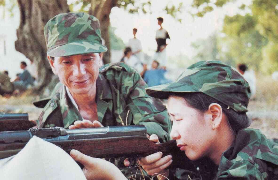 在港口民兵连的荣誉室里保留着一幅名为“父女同习武”的照片。照片中,身着墨绿色军装的女民兵手持步枪瞄准前方,同样墨绿军装的父亲则在一旁悉心指导。照片中的这对父女就是林煜和他的女儿林志芳。