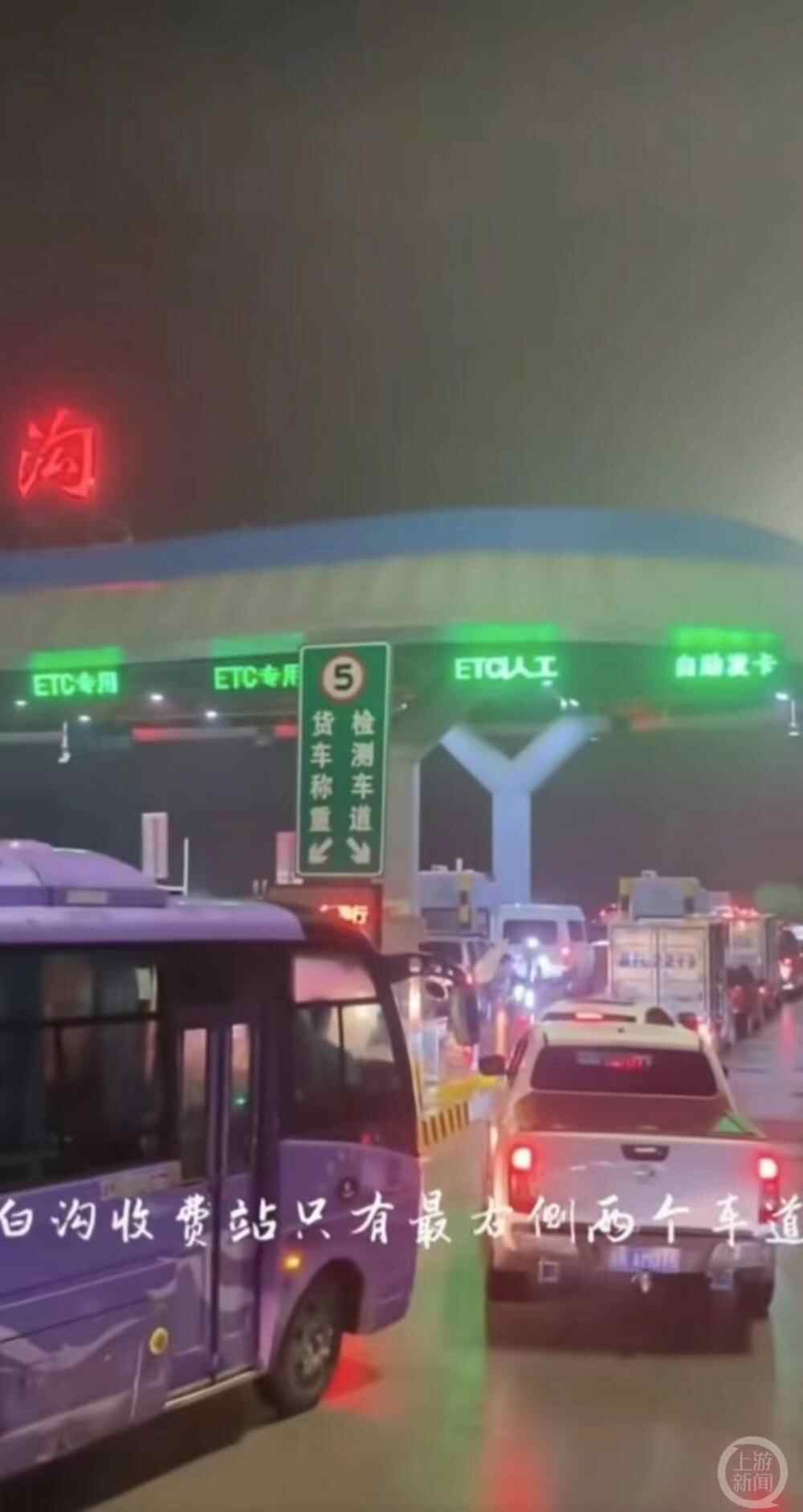 她还解释了视频中堵车的原因,“因为白沟新城主城区这一块只有这一个出口,其他出口都比较远了,相当于一个大口袋,很多车要往外撤离,这里一共20多万人口往外疏散。你看我们收费站是四个口,但是(高速)车道是三根道,有一些居民不知道大晚上撤离出来应该去哪,没有目的地,他们就在收费站附近逗留,导致堵了道了。然后造成这个车只有一条车道可以通行,所以堵车了。”