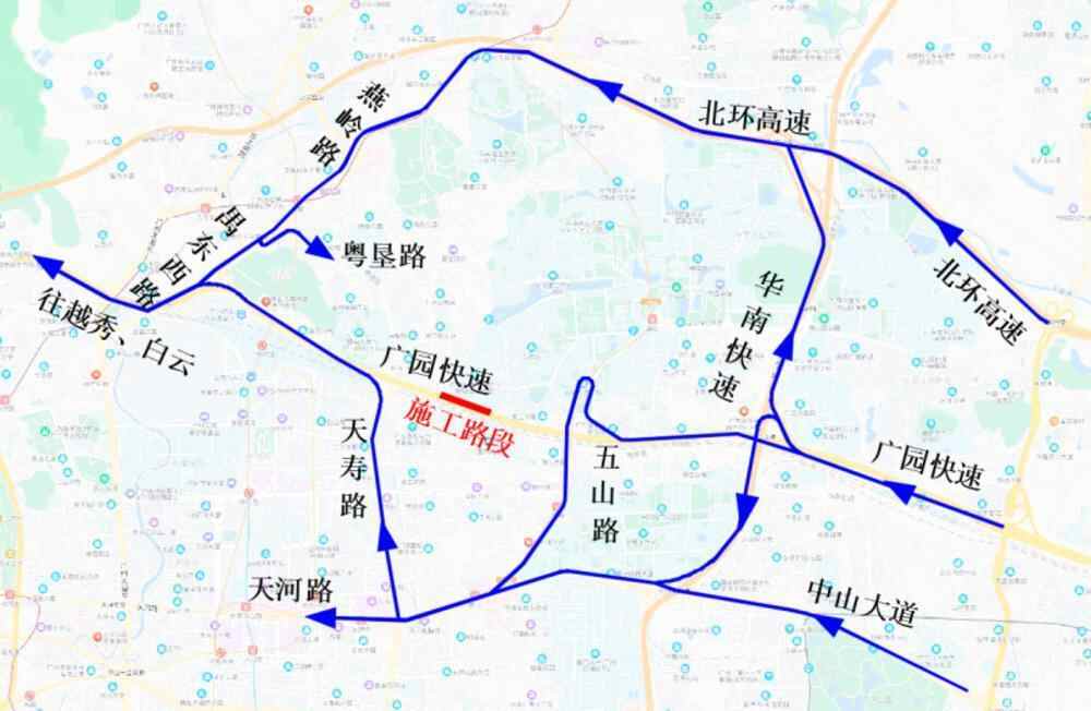广州市城市排水有限公司表示,在污水干管施工期间,广园快速路五山消防总队路段作业控制区及周边路段将设置绕行提示和配备交通引导人员,请途经车辆和人员及时掌握路况信息,按交通指引提前选择绕行路线,听从现场工作人员指挥,减速安全有序通行。为避免施工影响出行,过往车辆可提前选择北环高速、中山大道、黄埔大道等道路绕行,避开施工路段。对于施工可能给广大市民出行带来不便,广州市城市排水有限公司深表歉意,希望市民谅解和支持。