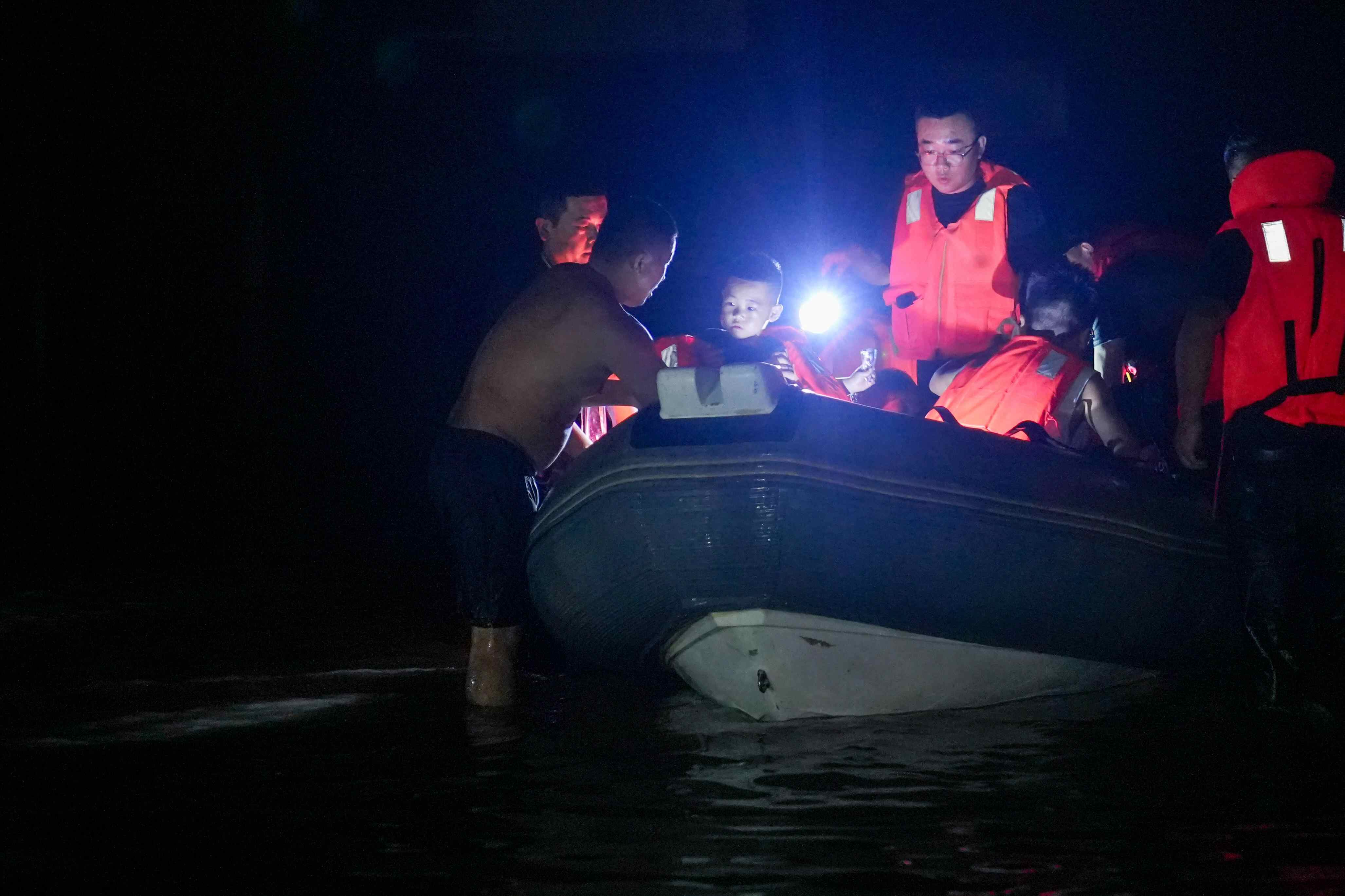 晚上10时30分左右,来自廊坊蓝天救援队和燕郊民间救援队的队员们正在现场进行营救作业。一位救援队员告诉记者,他们在晚上五点多才到涿州,本想前往城区救援,在经过刁窝村时被当地村民拦下,在了解到还有多名群众被困后,救援队员们没有犹豫,放下冲锋艇后,摸黑驶向水深处。