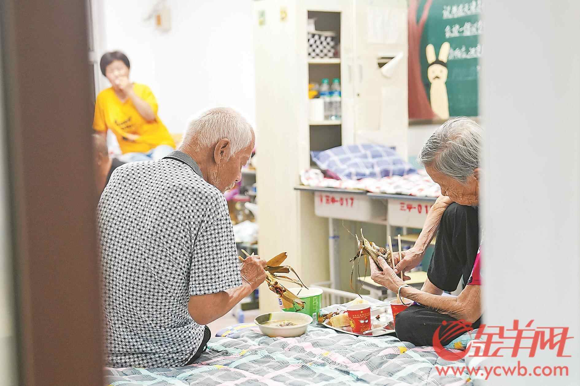 在1号宿舍楼,来自卢家场村的屈大哥一家五口住在一间宿舍里。8月1日下午,当洪水漫过脚脖子时,他们决定马上背着94岁的母亲撤离。安顿下来后,他们很快领到了洗漱用具,每顿饭可以去饭堂吃,还有志愿者来关心他们的生活,有时甚至送来西瓜。