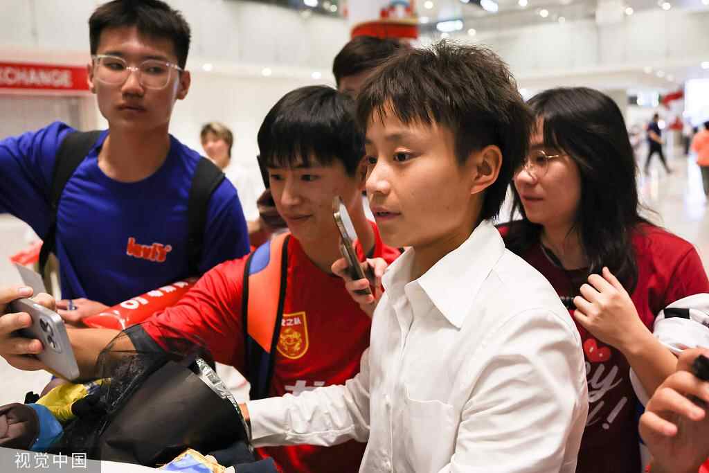 水庆霞在机场接受采访时表示,“希望小朋友们能更多观看和参与足球,展现对足球的热爱。”